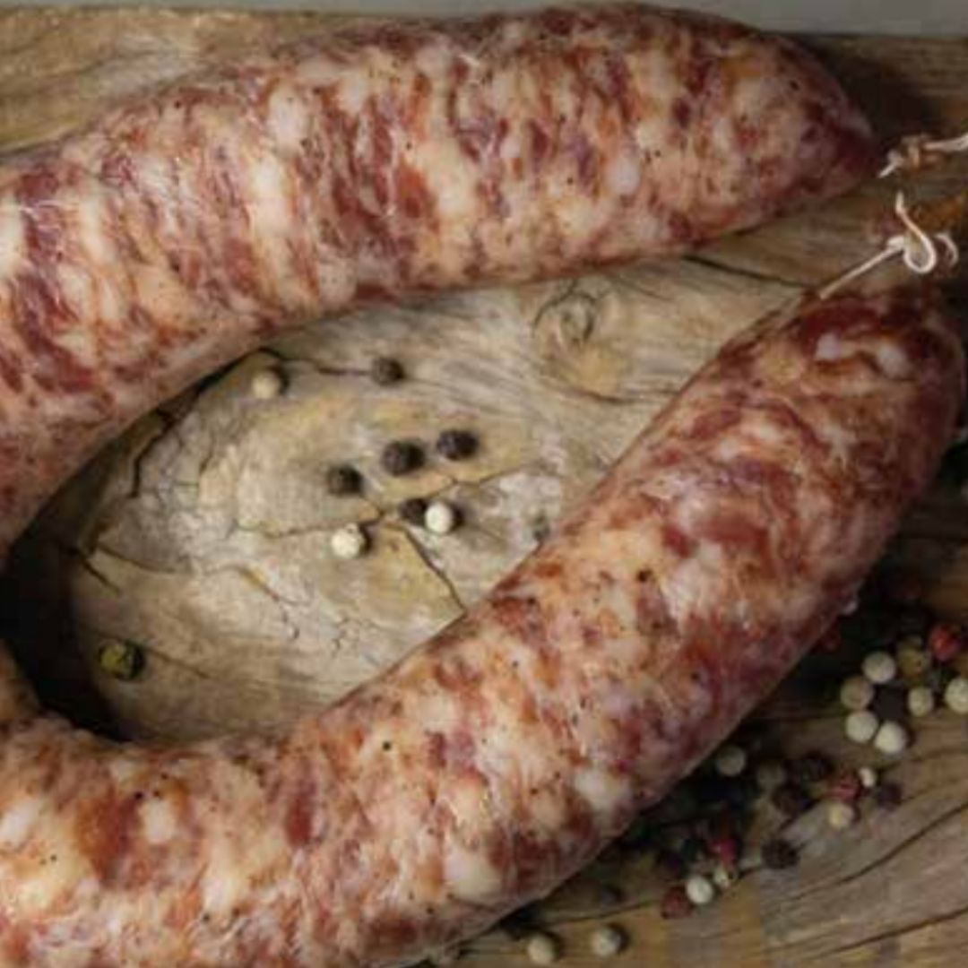 La base de magro de cerdo seleccionado aporta la estructura proteica necesaria para una curación equilibrada, mientras que el toque justo de clavo y pimienta le otorga ese aroma característico de la montaña alicantina. al utilizar exclusivamente tripa natural, aseguramos que la vuelta blanca madure de forma homogénea y mantenga su jugosidad interior.